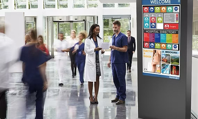 Navigo® is a comprehensive hospital digital signage and wayfinding solution designed to improve patient experience, streamline visitor management, and enhance clinical communication. It combines interactive kiosks, mobile navigation, secure visitor tracking, and a centralized content management system (CMS) into one integrated ecosystem.